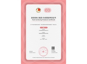 田径场地(跑道)合成面层审定证书